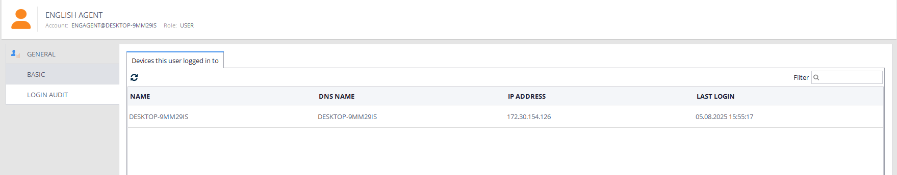In the same window we also have access to the list of the devices of last login of a given user, as well as the time of the last login.
