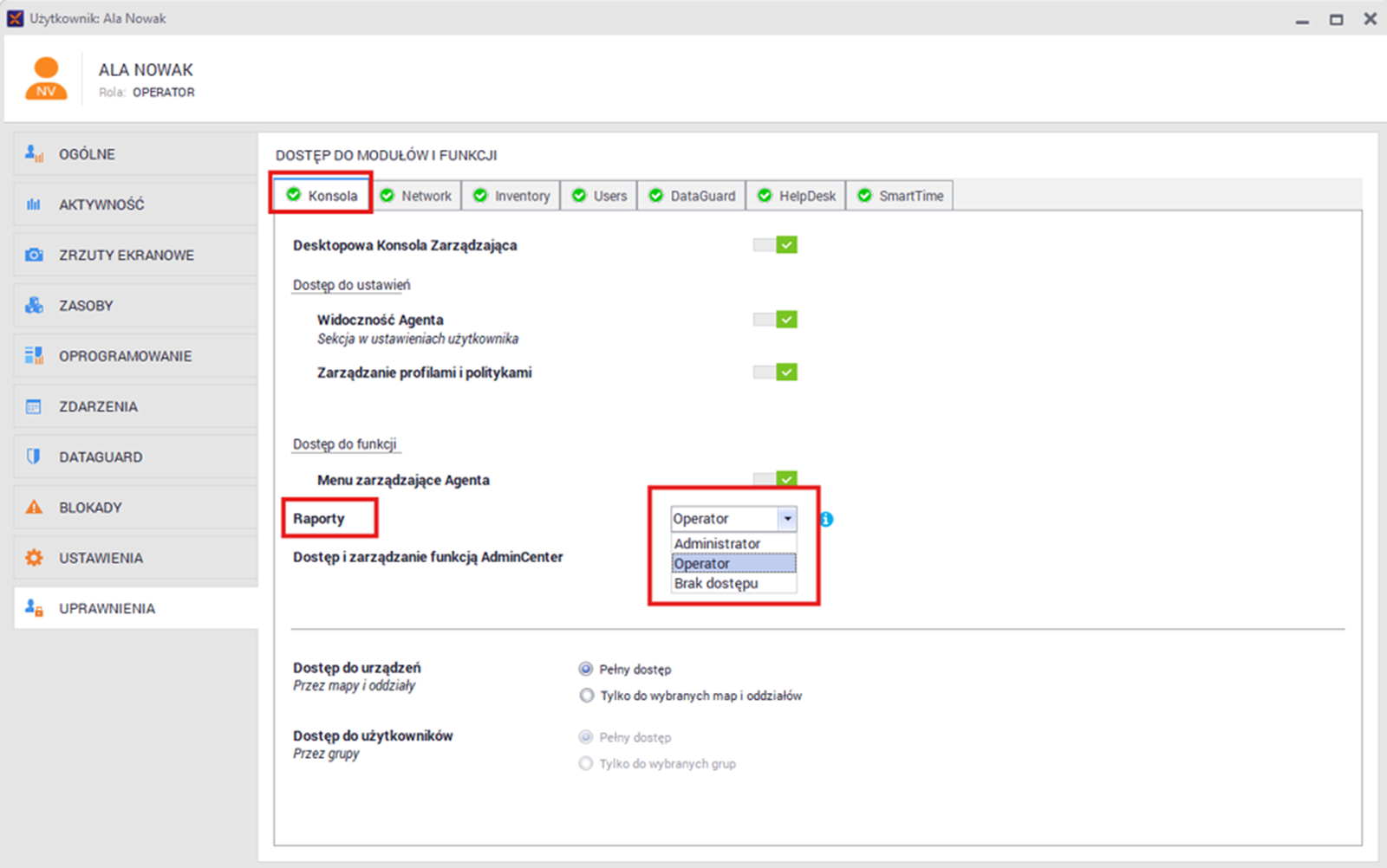 Users without access to the Reports module won’t see it, even if they belong to a group. In practice, effective permissions apply only to Operators or Administrators of the Reports module.