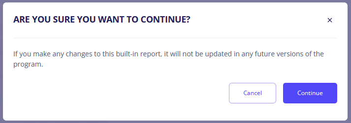 Important: Built‑in reports should preferably be saved as new copies. Once a built‑in report is modified, it can no longer be updated automatically in future software versions.
