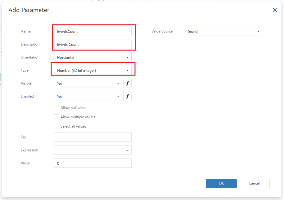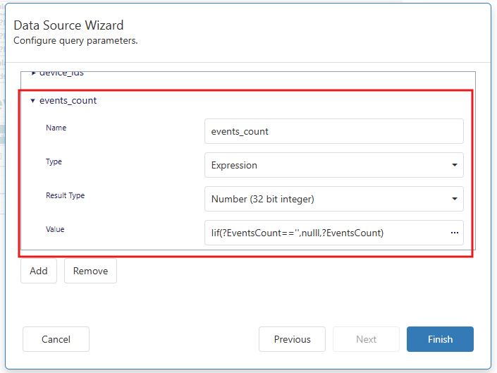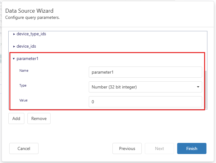 - In the Data tab, open the Parameters section.