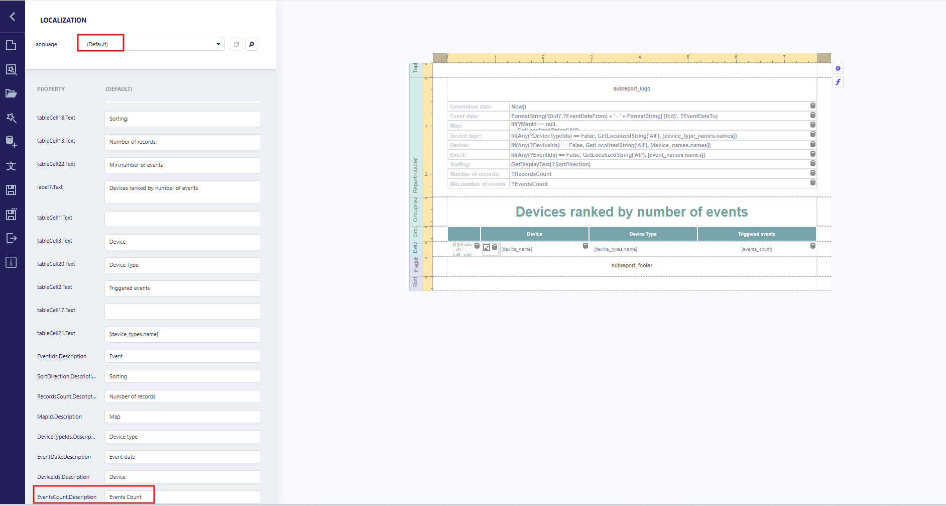 Add a parameter to the report Device Ranking by Number of Events that defines the minimum number of events required for a device to appear in the results.