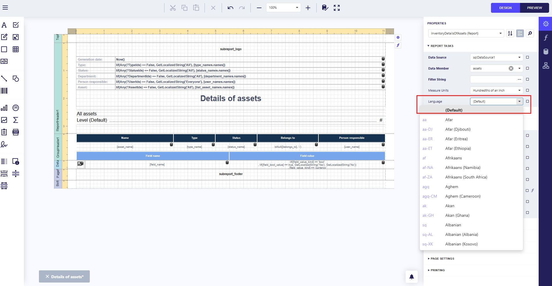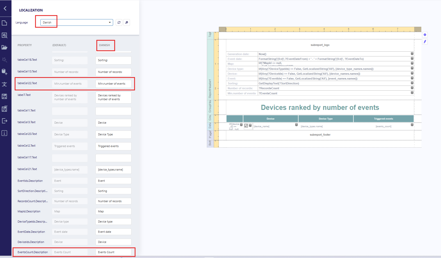 - Return the report language to the default.