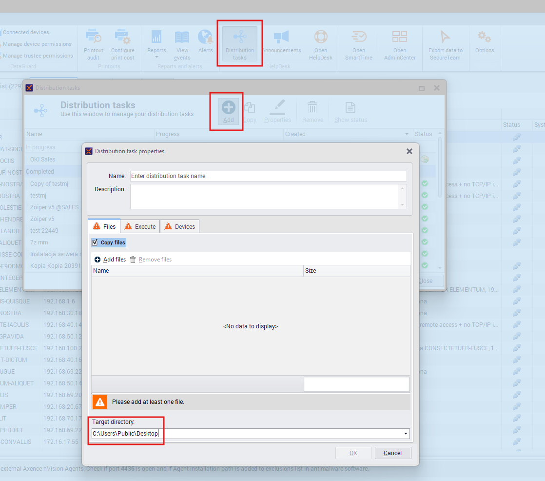 C:\Users\%PUBLIC%\DesktopWhen creating distribution tasks, enter the following in the “Target directory” field::
