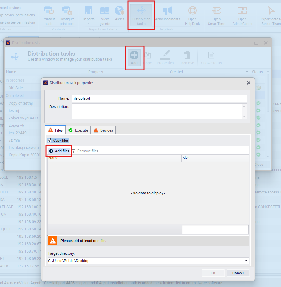 In the “Devices” tab, select the computers (with Agents installed) on which the registry should be imported.