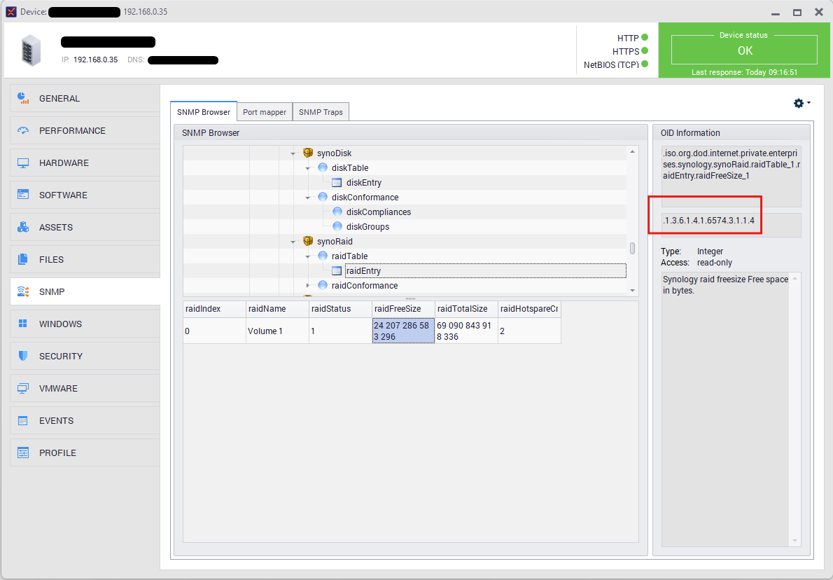 1.3.6.1.4.1.6574.3.1.1.4 - RAID freespace