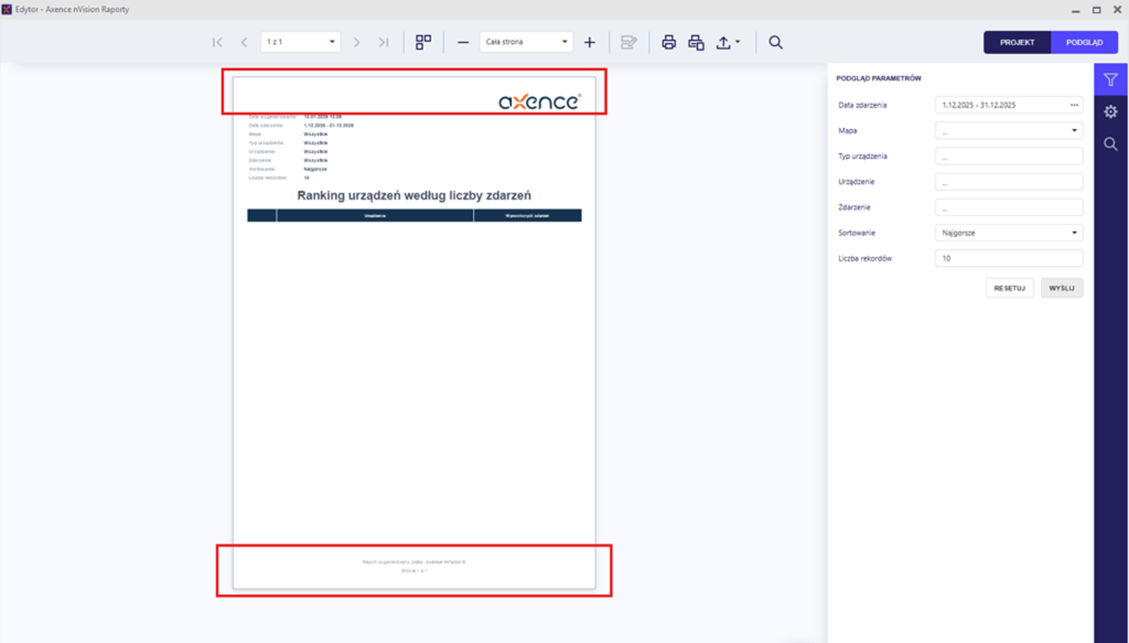 Tak stopkę, jak i logo, możemy edytować, pamiętając, że zmiany będą miały wpływ na wszystkie raporty, w których dany komponent został użyty.