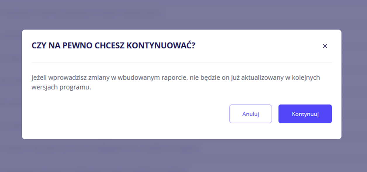 Dlatego warto korzystać z bezpieczniejszej opcji i zapisywać raporty jako nowe. Jeśli jednak zdecydujemy się na nadpisanie wbudowanego raportu, będziemy mogli w każdej chwili przywrócić jego oryginalną wersję.