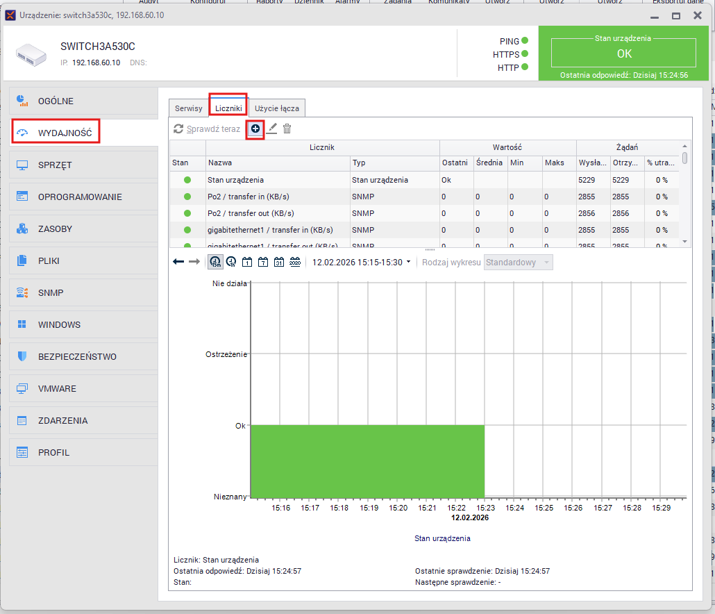 przejdź do zakładki "Wydajność \ Liczniki" i kliknij symbol ( + ),