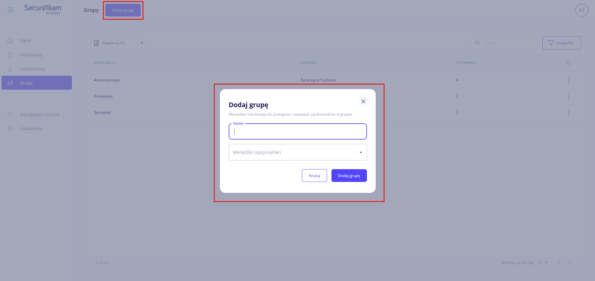 Nazwa grupy nie musi być unikalna, tj. w organizacji może istnieć wiele grup o tej samej nazwie.