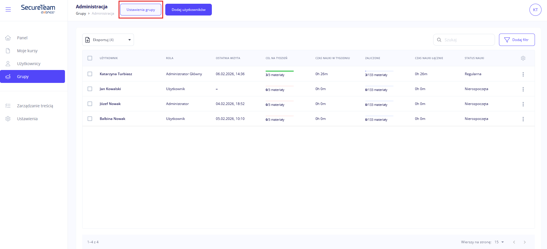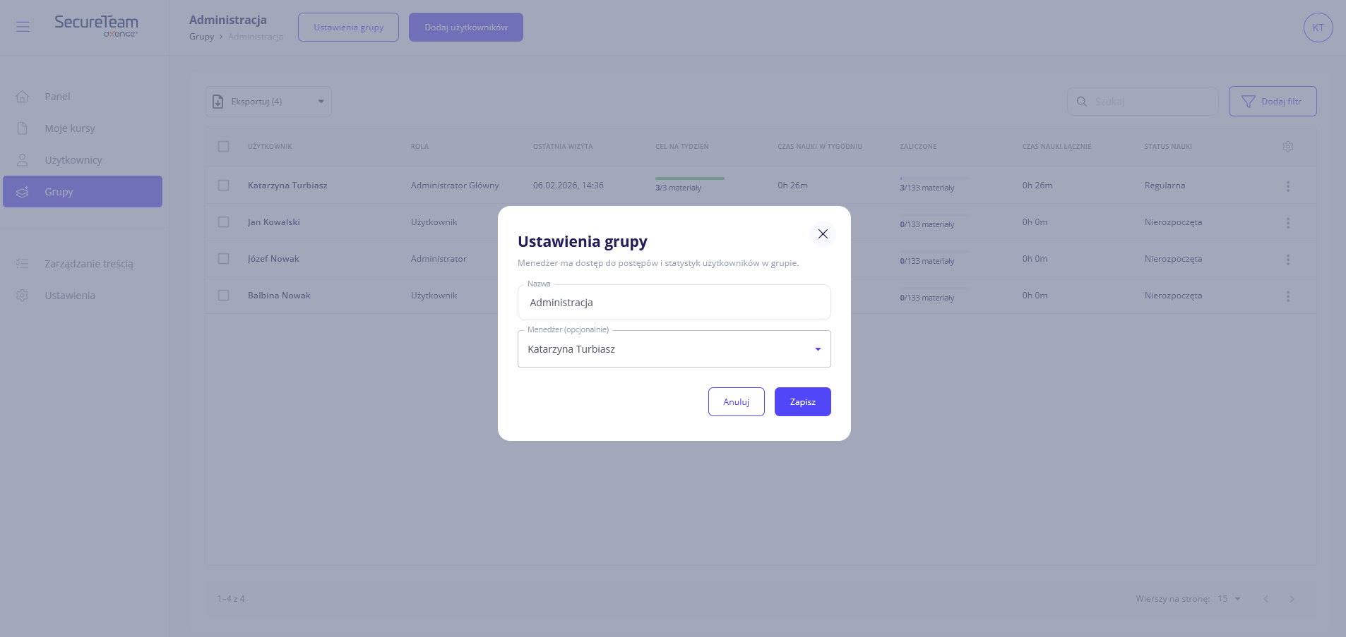 Grupie możesz zmienić nazwę, możesz też zmienić (lub zupełnie usunąć) menedżera.