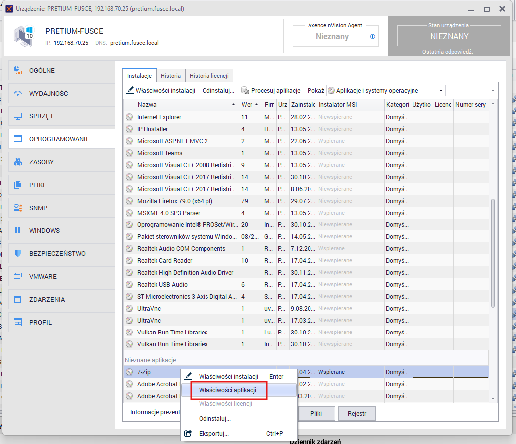 Jeśli na liście oprogramowania Agenta nie widzisz zainstalowanego programu: