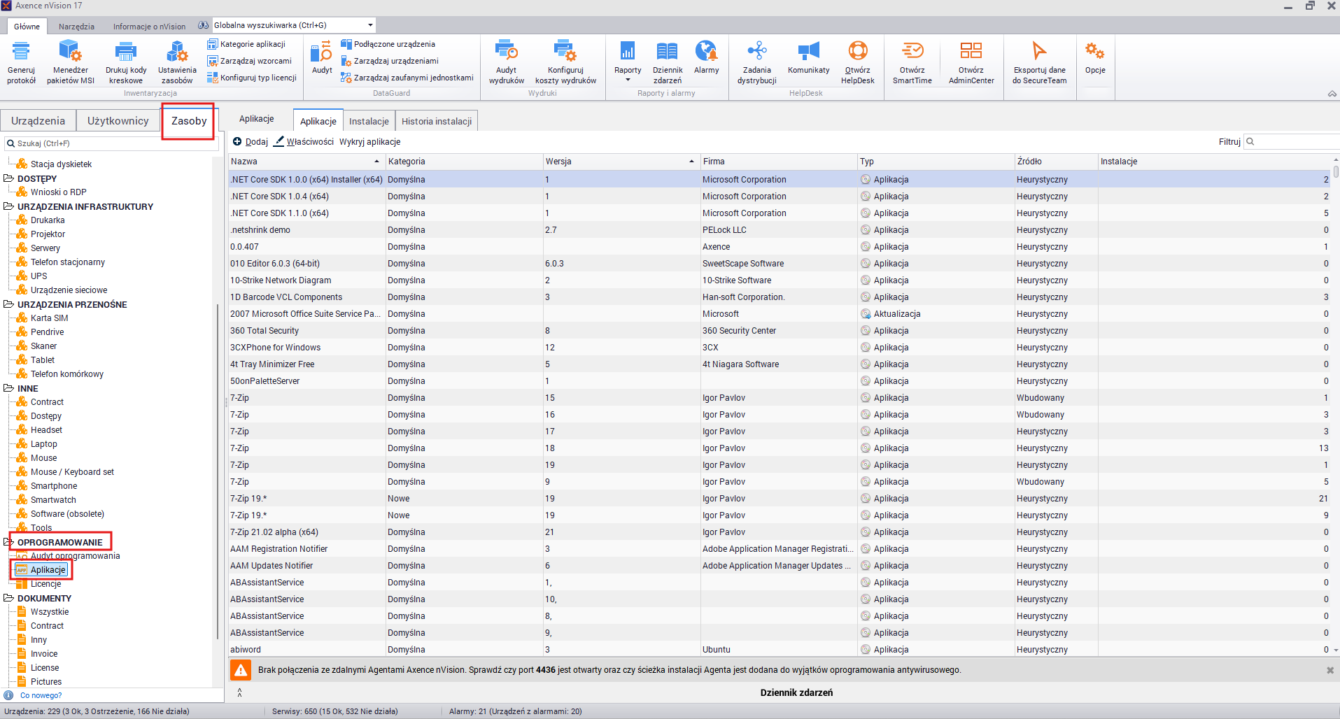 Agent nVision wykrywa oprogramowanie urządzenia poprzez skany: