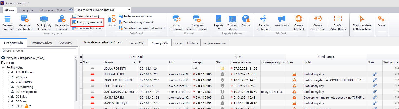 po edycji wzorców aplikacji konieczne jest ich wykrycie w danych Agentów w oknie Zarządzaj wzorcami.