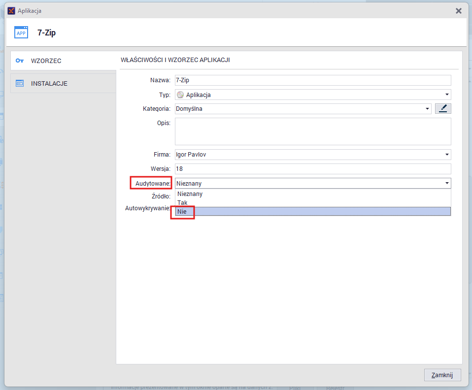 wzorcami aplikacji możesz zarządzać w oknie Zasoby > Oprogramowanie > Aplikacje: