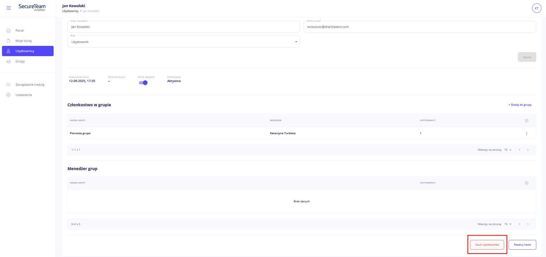 Usuwanie użytkownika
