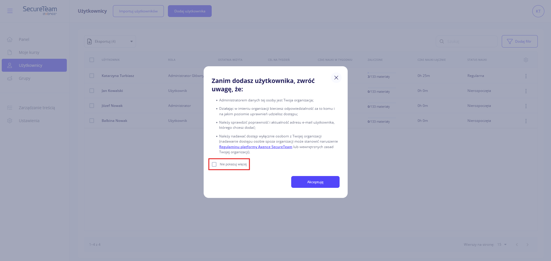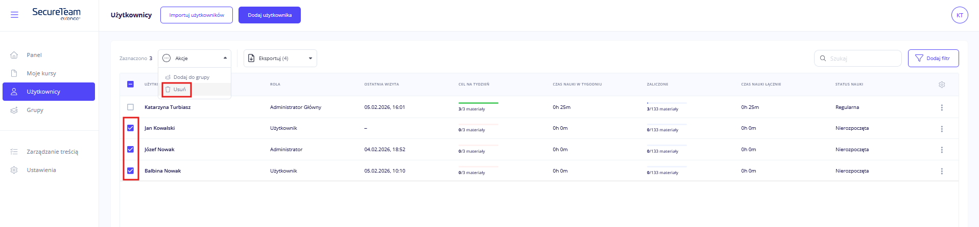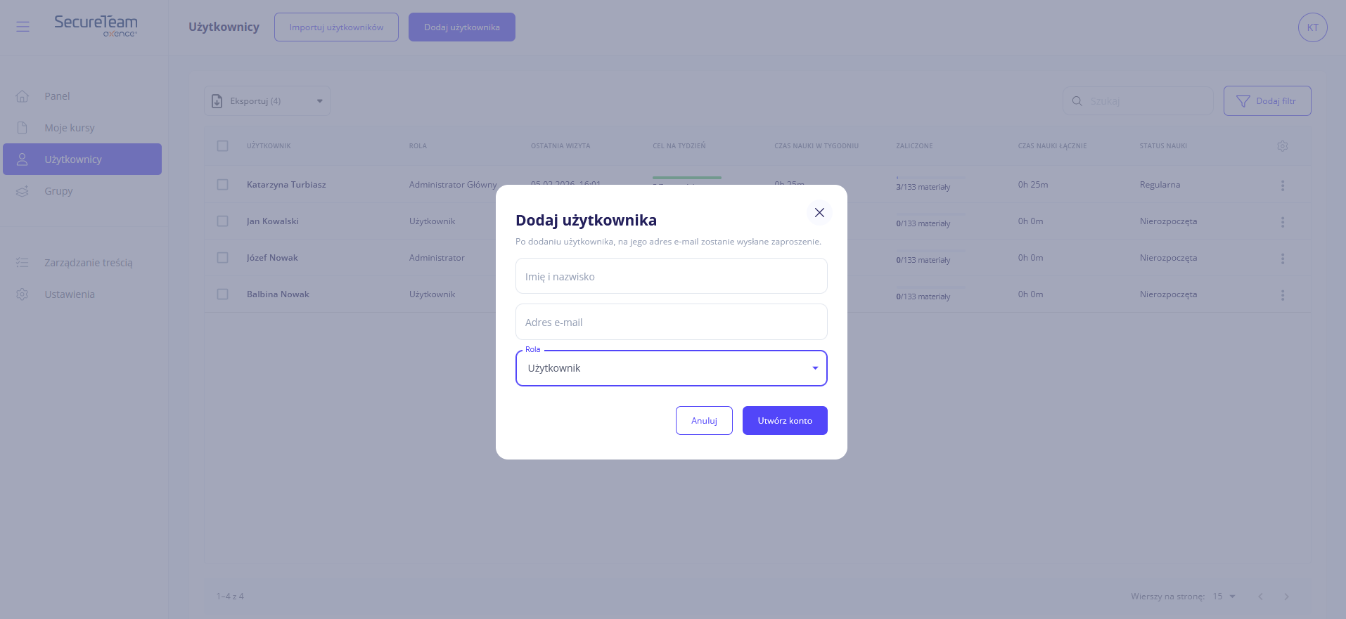 Konta użytkowników możesz również tworzyć przez import pliku CSV.