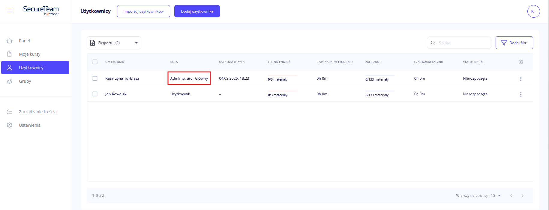 Ze względu na swoją nadrzędną rolę, konta Administratora Głównego nie można usunąć.