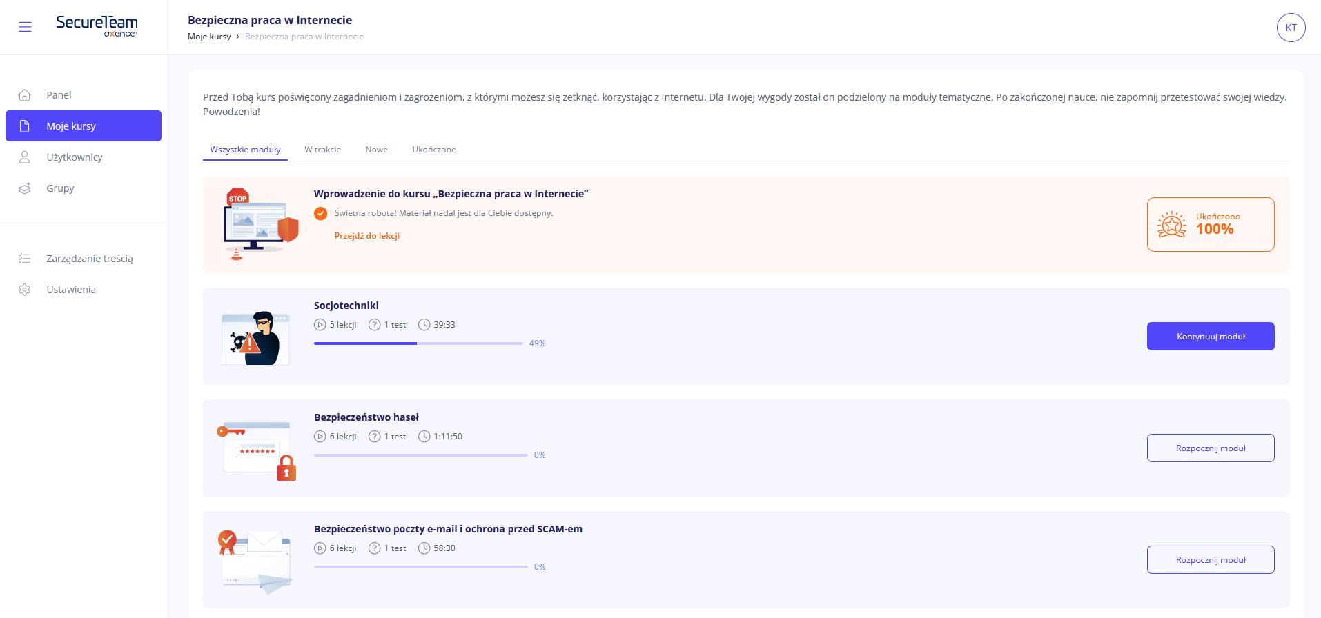 Axence SecureTeam to platforma szkoleniowa, na której: